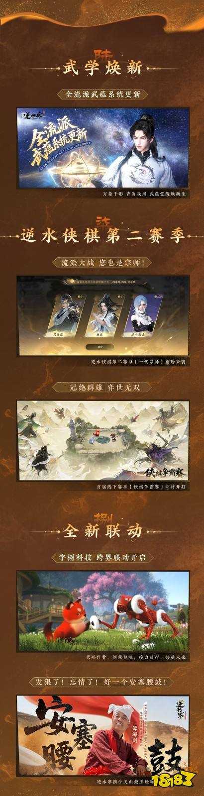 而除了“能摸真钱”外,逆水寒本次秋季资料片还带来了超大量的更新与福利,玩法包括画质提升、全新地图【关山】全新剧情、全新副本、宇树科技联动、自走棋玩法【逆水侠棋】S2等等,而福利则包括10件免费时装、近百款免费外观等等。