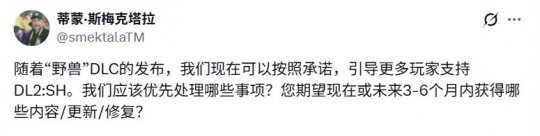 该系列游戏总监蒂蒙·斯梅克塔拉在社交媒体上发帖透露,Techland可能会开始将开发力量重新调配至《消逝的光芒2》项目,并征询玩家希望当前或半年后获得哪些更新与修复。帖子发布后,玩家社区陆续提出了从手电筒故障修复到武器平衡性调整等各类建议,目前尚不清楚官方对这些建议的重视程度,也不确定他们是否已形成既定方案。不过,参照该工作室对《消逝的光芒》初代的长达十年的持续免费更新,二代很可能延续这一支持方式。