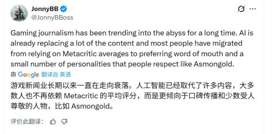“给一款游戏打低分只是因为它用了AI配音,这样做是不是有点不妥?