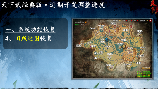 除此之外,我们发现《天下贰·经典版》是完全基于2008-2010年的天下贰版本进行设计的。不仅恢复了之前的装备鉴定系统,还对系统设置界面、旧版地图、守卫门派等元素进行了深度复原。