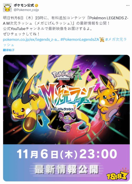 另外值得一提的是,《宝可梦传说:Z-A》DLC“超次元爆涌”的最新信息将于今晚公布,并将通过官方YouTube频道带来最新视频。