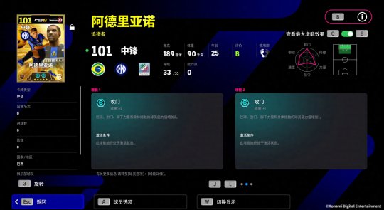 阿德里亚诺的增能属性为【射门 +3】,射门和脚下力量的增强让“梅阿查国王”再现充满暴力美学的射门!