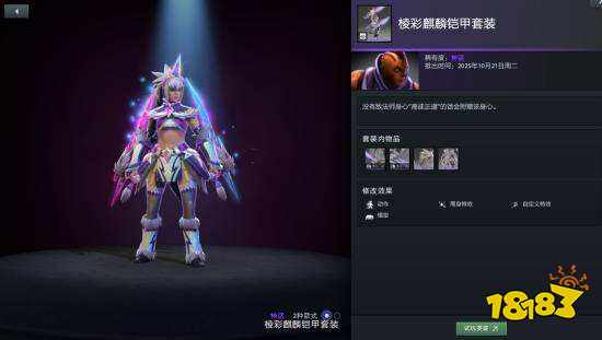 敌法师身心套装麒麟铠甲拥有三种额外款式可供打造,分别为冰霜残骸、金色和棱彩。