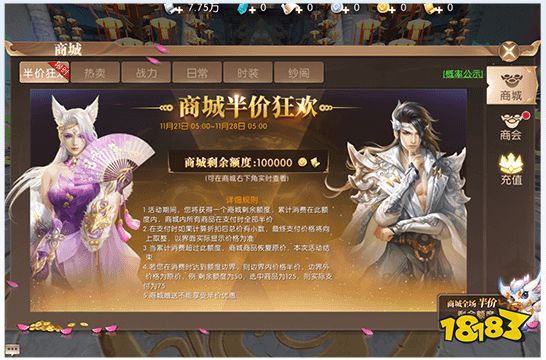 商城半价狂欢;“洛水听雪”专属定制奖励;血盟领袖/主播扶持;