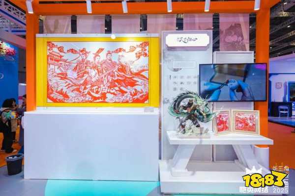 具体展品方面,建窑建盏与《蓝月传奇》联名推出“义结金兰对盏”,将江湖情谊融入茶器设计;《百工灵》结合制扇技艺打造的黑纸扇,展现出东方美学的细腻韵味;景德镇墨彩手绘瓷器则与《禹兮世界》《岁时令》合作,推出一系列符合当代年轻人审美的国风文创。尤为引人注目的是,即将上线的新游《三国:天下归心》与扬州剪纸合作创作的2米长“三国鼎立”主题作品首次公开,以剪纸艺术再现三国历史的磅礴气象。