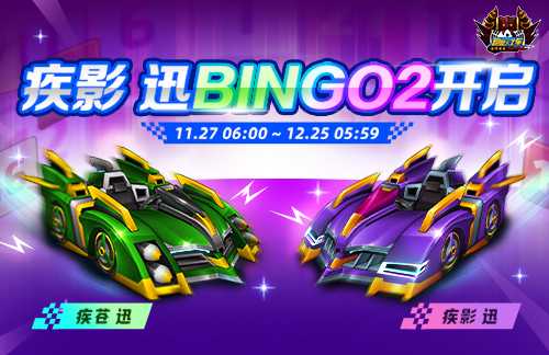 《跑跑卡丁车》<疾影 迅BINGO2>限时开放中,即刻前往游戏,获取属于你的“疾苍 迅(无限制)”与“疾影 迅(无限制)”~